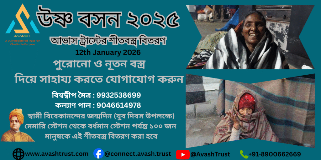 A Humanitarian Winter Relief Initiative Across Bardhaman, Shaktigarh, Rasulpur & Memari Organized by: AVASH TrustRegistration No.: IV-00019/2025Darpan Registration No.: WB/2025/0816627 Introduction As the cold winds of winter sweep across West Bengal, countless underprivileged families face the harsh reality of inadequate clothing and warmth. To bring comfort and kindness to those in need, AVASH Trust proudly […]
